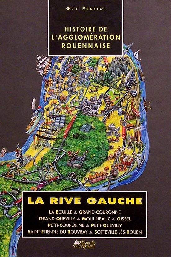 Ce livre réalisé par l’historien rouennais Guy Pessiot et paru en novembre 1990 présente toute l’histoire des communes de la rive gauche de l’agglomération de Rouen. Il contient des photos anciennes noir et blanc très intéressantes, mais aussi beaucoup de texte très riche en informations.