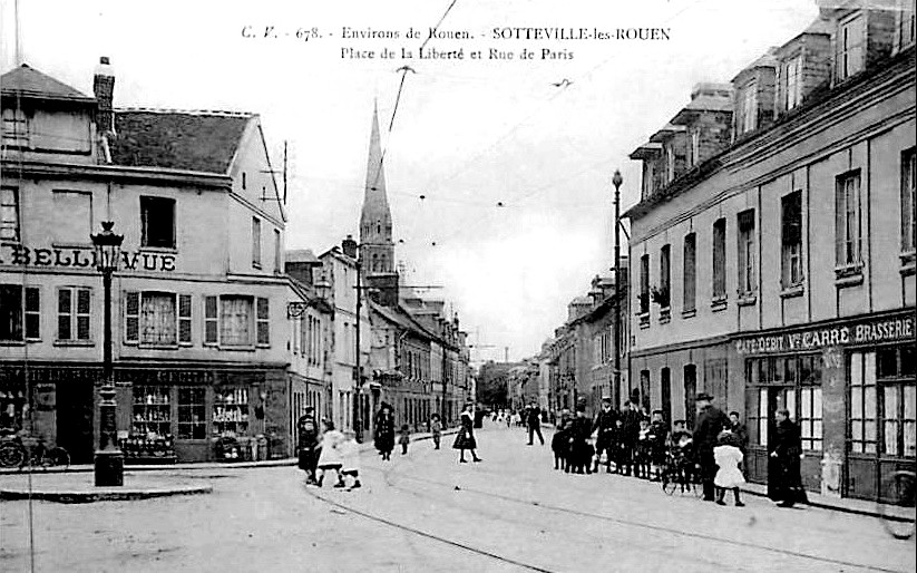 Place de la Liberté, dans les années fin 60-70 il y avait un magasin de moyenne importance, de radio-télé et autre produits électriques ou électroniques. Si j’ai bonne mémoire, il était tenu par Madame Prentout (je vous l’écris en phonétique, j’ai plus le souvenir d’en avoir entendu parler que d’avoir vu son nom écrit) . Ce magasin devait se situer approximativement derrière le lampadaire portant l’indication « Contrôles radar fréquents », à l’extrême droite de la 1ere photo contemporaine, ce même lampadaire devant lequel est garée une voiture grise sur la dernière photo. Peut-être au 137, emplacement du resto « La carte d’Orient ».