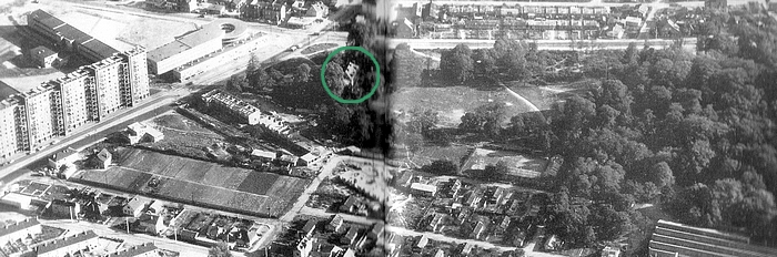 À noter que sur les vues de 2012, le chantier est celui du magasin Netto qui vient d’être démoli, et aux immeubles pas encore construits. Ce terrain était jadis occupé par des jardins maraîchers que l’on voit bien sur les photos d’époque.