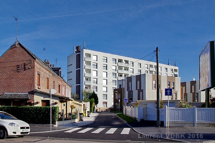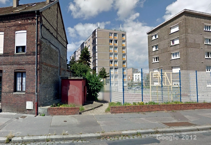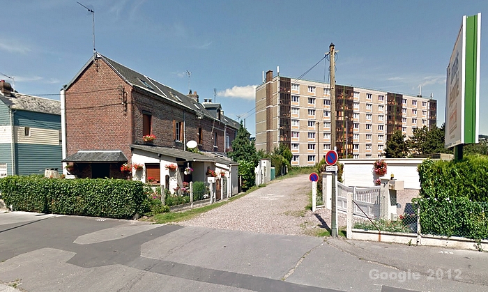 Côté rue Pierre Corneille. Un chemin sans issue desservait les maisons. Il a été prolongé jusqu’au chemin qui longeait l’immeuble, formant ainsi un angle à la nouvelle rue :