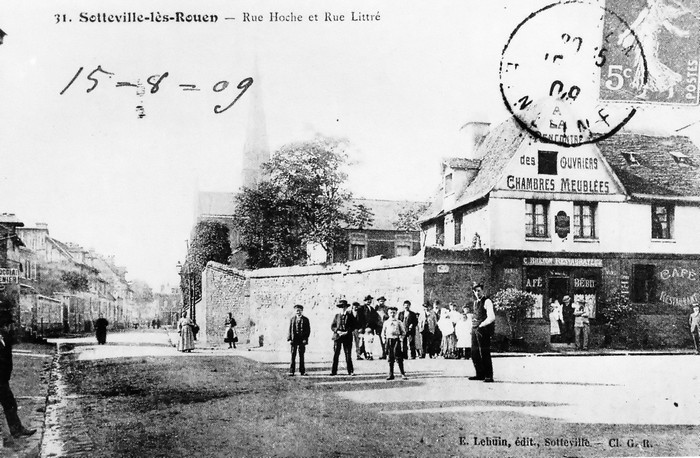 Après ce mixage entre deux photos prises sous le même angle à plus d’un siècle d’écart, les voici isolées : Sur celle de 1909, on constate que la rue Pierre Corneille n’existait pas : La rue Littré filait tout droit, la rue Hoche la rejoignait par la droite.