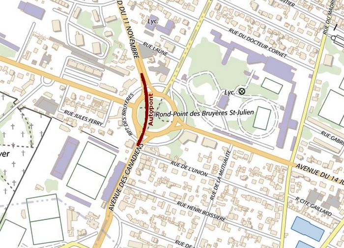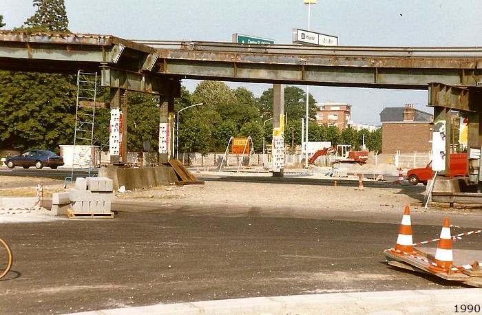 Construit en 1970 pour privilégier l’itinéraire vers le Boulevard du 11 Novembre sans avoir à faire le tour du giratoire, l’autopont des Bruyères a finalement été démoli en 1990.