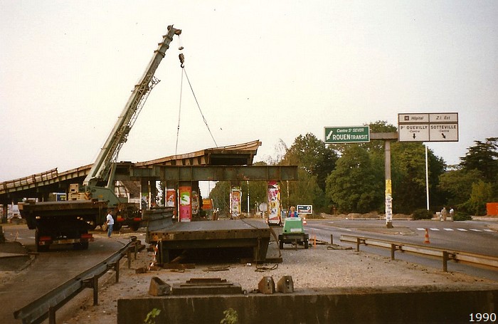 Et voici les fameuses photos du démontage de l’autopont en 1990. Elles ont été prises depuis l’avenue des Canadiens, à l’extrémité sud du « tobbogan », comme on disait :