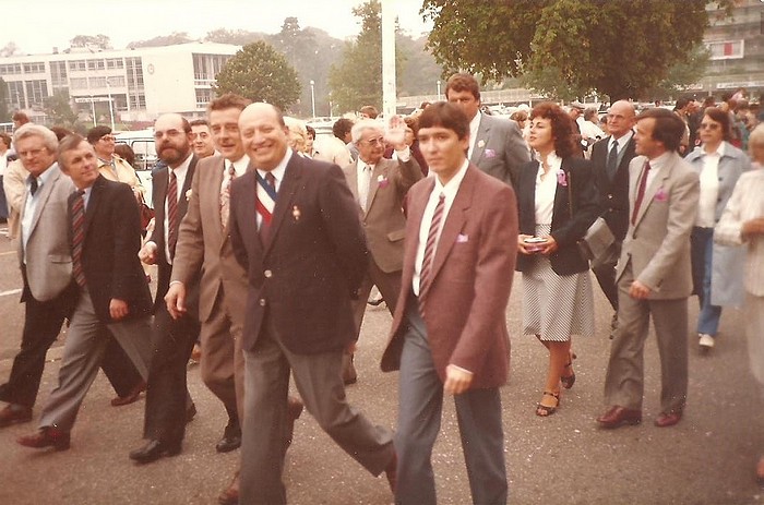 Sur cette photo de 1983, on voit (avec l’écharpe) le maire René Salmon (qui vient de succéder à Roland Tafforeau). A sa droite, Léon Smiaroski était élu et président de l’union des commerçants. Encore à côté, Pierre Bourguignon (qui allait devenir maire quelques années plus tard). Les autres personnes sont aussi des élus mais mes parents ne se souviennent plus de leur nom… [ n’hésitez pas à les citer en commentaire si vous les reconnaissez ! ]