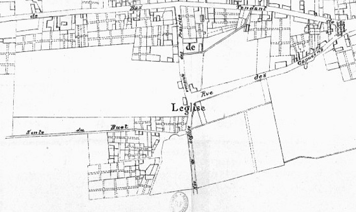 La rue de l’église repérée sur le premier plan allait donc bien vers l’église mais sans y mener jusqu’au bout…