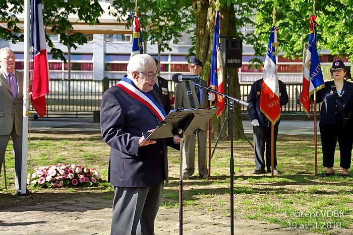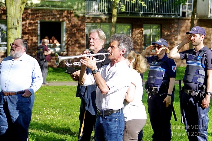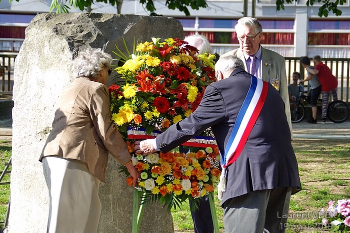 Comme chaque année, la commémoration du bombardement de la nuit du 18 au 19 avril 1944 a eu lieu ce 19 avril 2018 à la stèle située dans l’Espace Marcel Lods (Zone Verte), en plein coeur de l’ancien centre-ville.