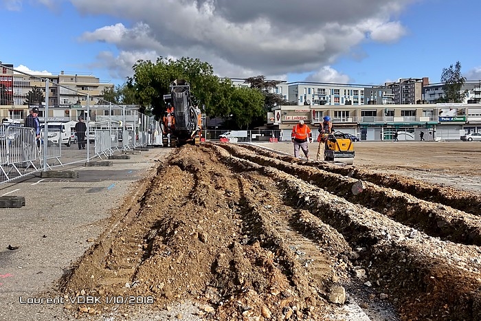 1er octobre : décroutage du bitume de la rue qui traverse la place :