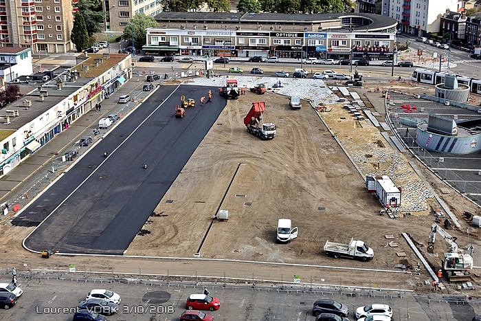 3 octobre : Début de la pose de l’enrobé sur la partie basse de la place de l’Hôtel de Ville :