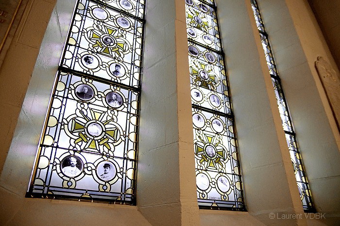 Portraits des soldats de la première guerre mondiale sur les vitraux de la crypte N.D. de Lourdes à Sotteville-lès-Rouen