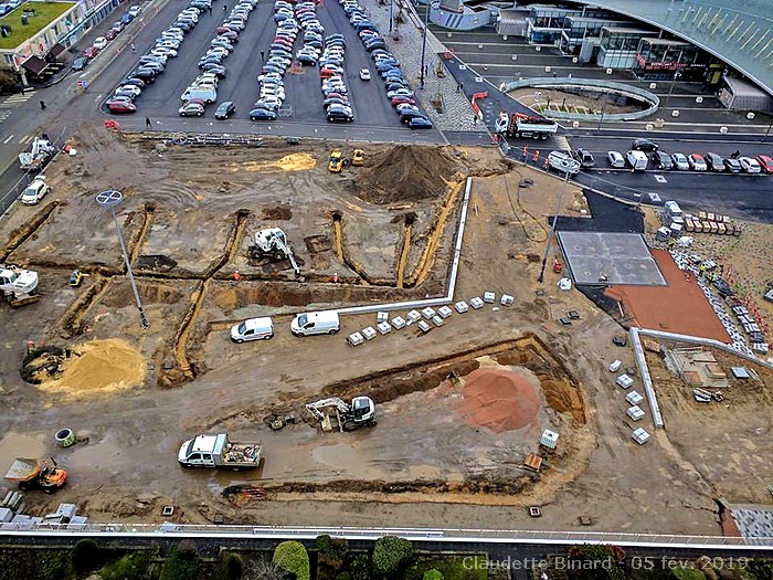 Chantier de réaménagement de la place de l'Hôtel de Ville à Sotteville-lès-Rouen