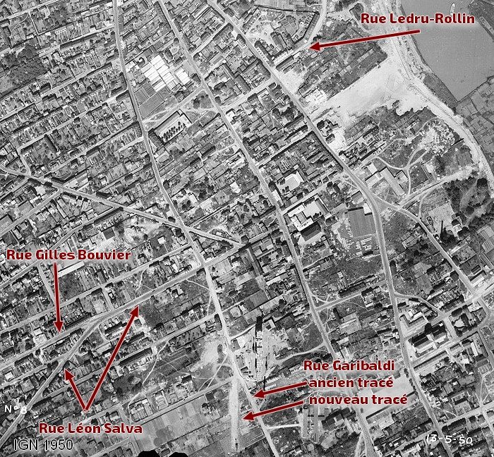Avant-guerre, la rue Léon Salva se terminait rue Garibaldi, par un petit tronçon qu’est devenu le prolongement de la rue Gilles Bouvier.