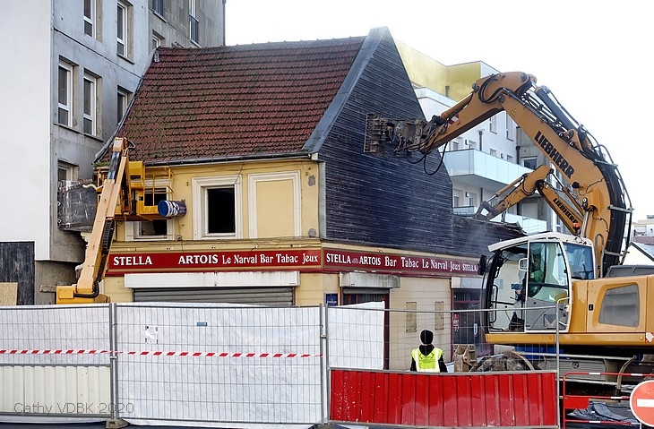 Démolition de l'ancien bar-tabac Le Narval rue Raspail à Sotteville-lès-Rouen