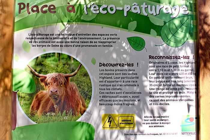 D’ailleurs, comment se fait-il que la Seine ne soit plus là sur cette photo récente, pourtant prise au même endroit, le chemin du Halage servant de repère ? Comment se fait-il que des vaches Highland ruminent à l’ombre des arbres, là où le brave passeur ramait quelques décennies plus tôt ?
