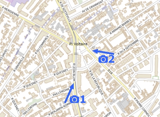 Pour mieux vous orienter, voici le plan du quartier, avec les angles de vue des deux avant/après :
