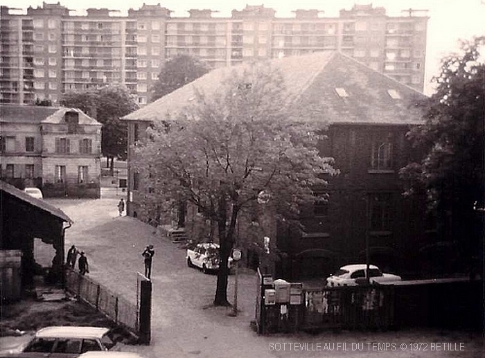 Sur cette photo de 1972, on reconnait la bâtiment massif de la Solidarité Sottevillaise vu sur la photo 1/, mais pris dans l’autre sens. Au fond, on identifie aussi les anciens bureaux de la coopérative vus sur la photo 2/.