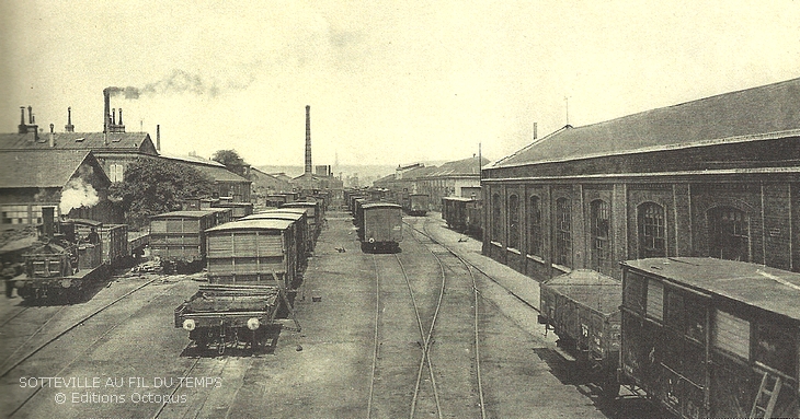 Quant à la gare de triage, elle est créée en 1886 sur les prairies sottevillaises. Elle sera modernisée en 1911, 1928, après-guerre, puis 1966 avec l’automatisation et la création d’un second faisceau, à l’emplacement des jardins ouvriers.