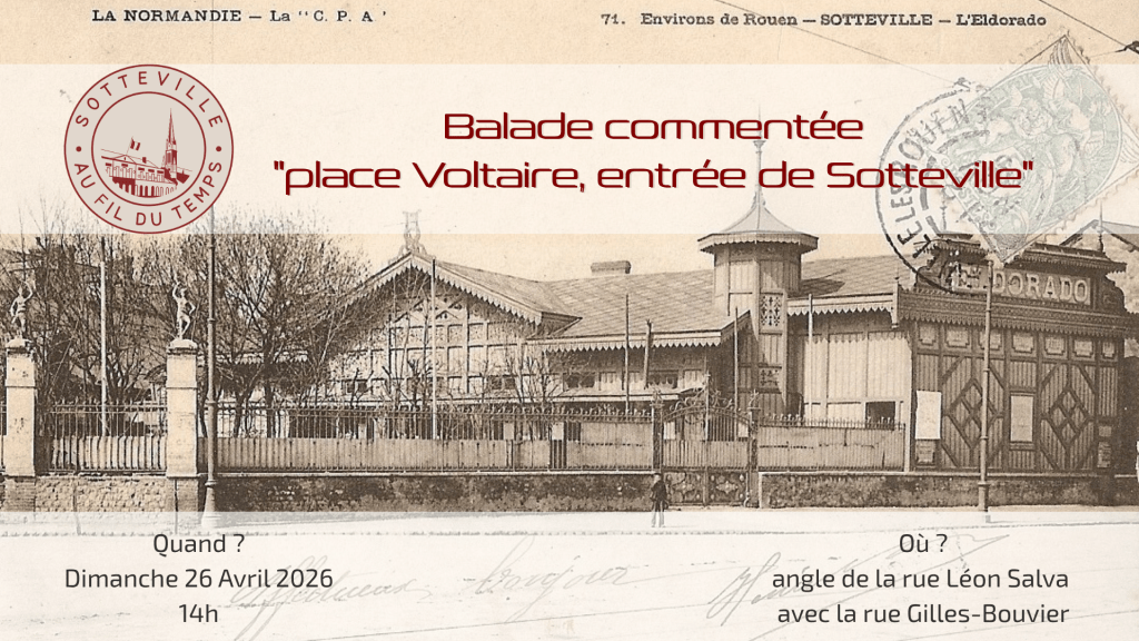 L’association Sotteville au fil du temps vous propose une nouvelle balade commentée autour de la place Voltaire et de l’entrée de Sotteville.