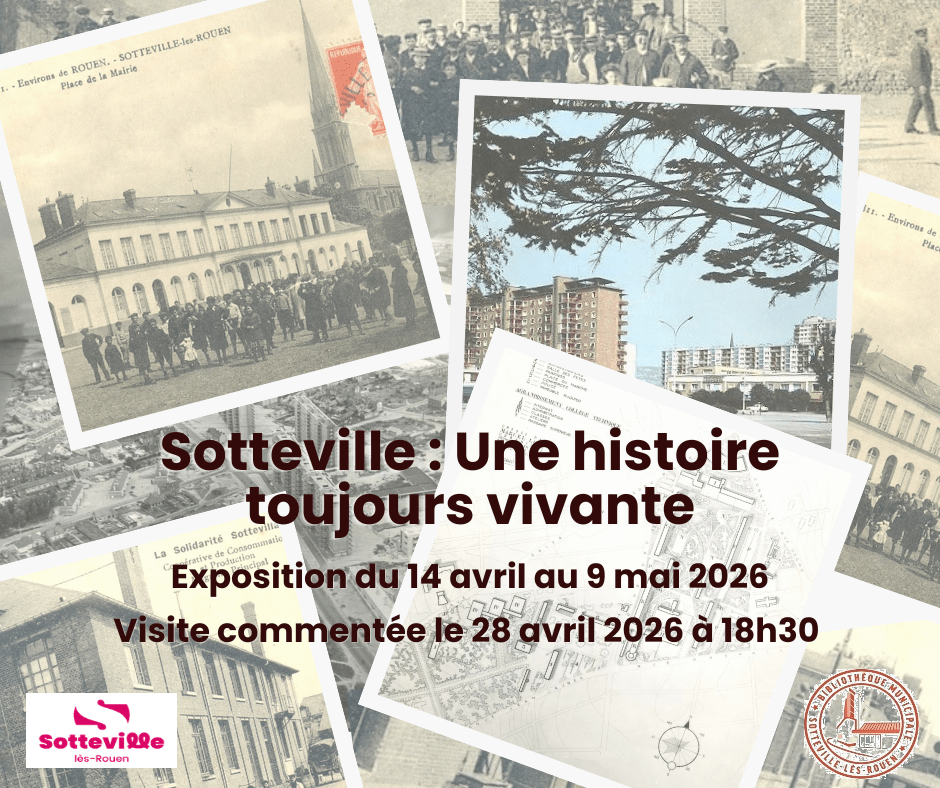 La bibliothèque de Sotteville-lès-Rouen accueille actuellement l’exposition « Sotteville : une histoire toujours vivante », consacrée à l’histoire de la ville à travers documents et photographies.