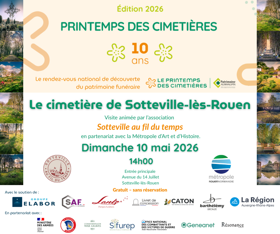 Dans le cadre du Printemps des cimetières 2026, l’association Sotteville au fil du temps propose une visite commentée du cimetière de Sotteville-lès-Rouen.