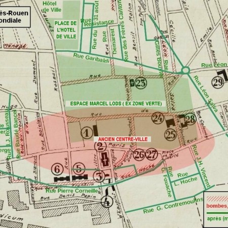 Superposition des plans de Sotteville d’avant et d’après-guerre